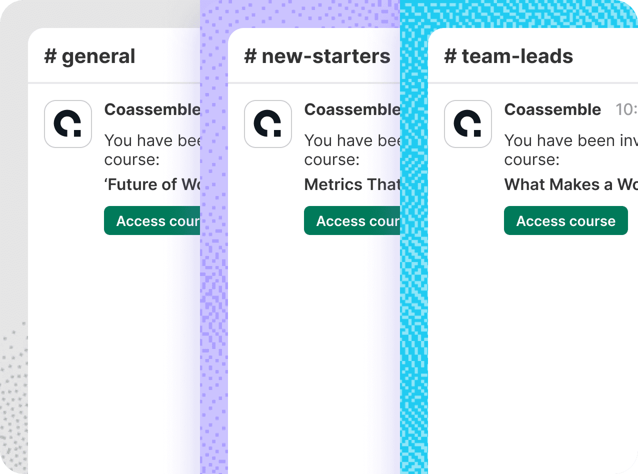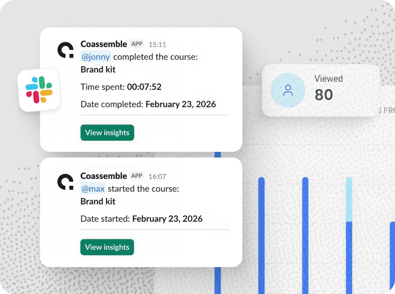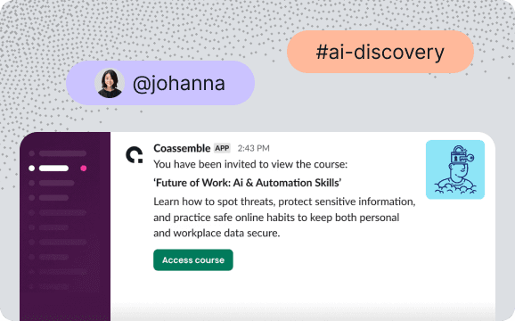 Convert legacy PowerPoints into vibrant, shareable courses that keep all your original content unchanged. Then distribute your training where it counts—embedded on your site, shared in Slack or email, or connected to the tools your team already relies on. Coassemble rescues your content from traditional slide decks and puts learning where it belongs: in the flow of work.