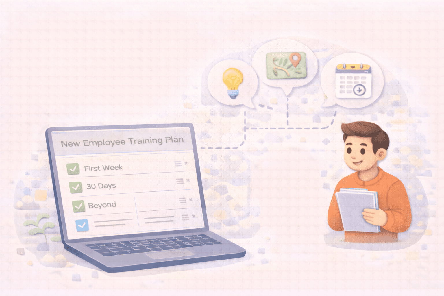 A training plan for a new employee is a structured roadmap that outlines what a new hire needs to learn, by when, and how. It covers the skills, tools, key processes, and relationships they need to start contributing confidently.